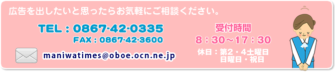 広告に関するお問い合わせ、ご質問、お見積もりなどございましたらお気軽にお問い合わせください。